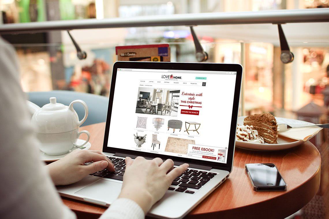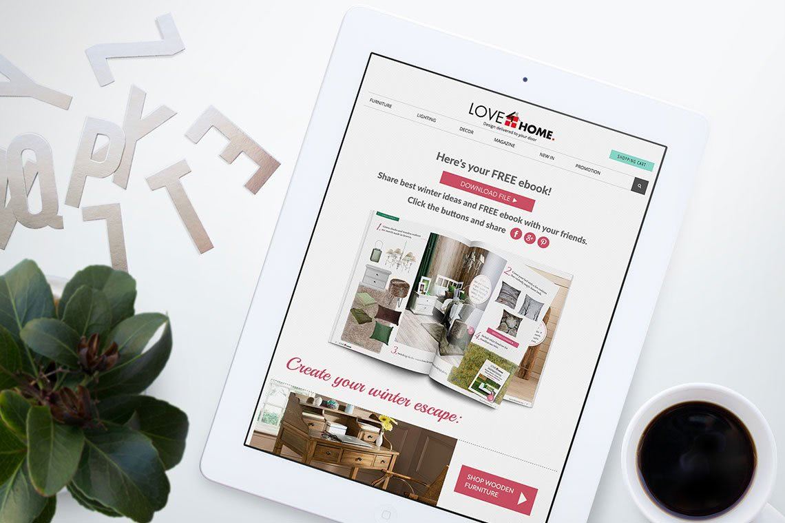The Christmas Special Edition free eBook included four Christmas styling trends as well as DIY ideas, festive cooking recipes, and the Create Your Holiday Living Room video. The whole ebook “Big Christmas Decorating Guide” is available here. They were linked to a special landing page where each eBook was presented in an open layout. Once submitted their email, customers received a special newsletter with a coupon code and a link to a free eBook. Next to the Facebook campaign, each eBook was promoted with a pop-up window on the home web page and with a newsletter that was regularly sent to the existed customer email database.