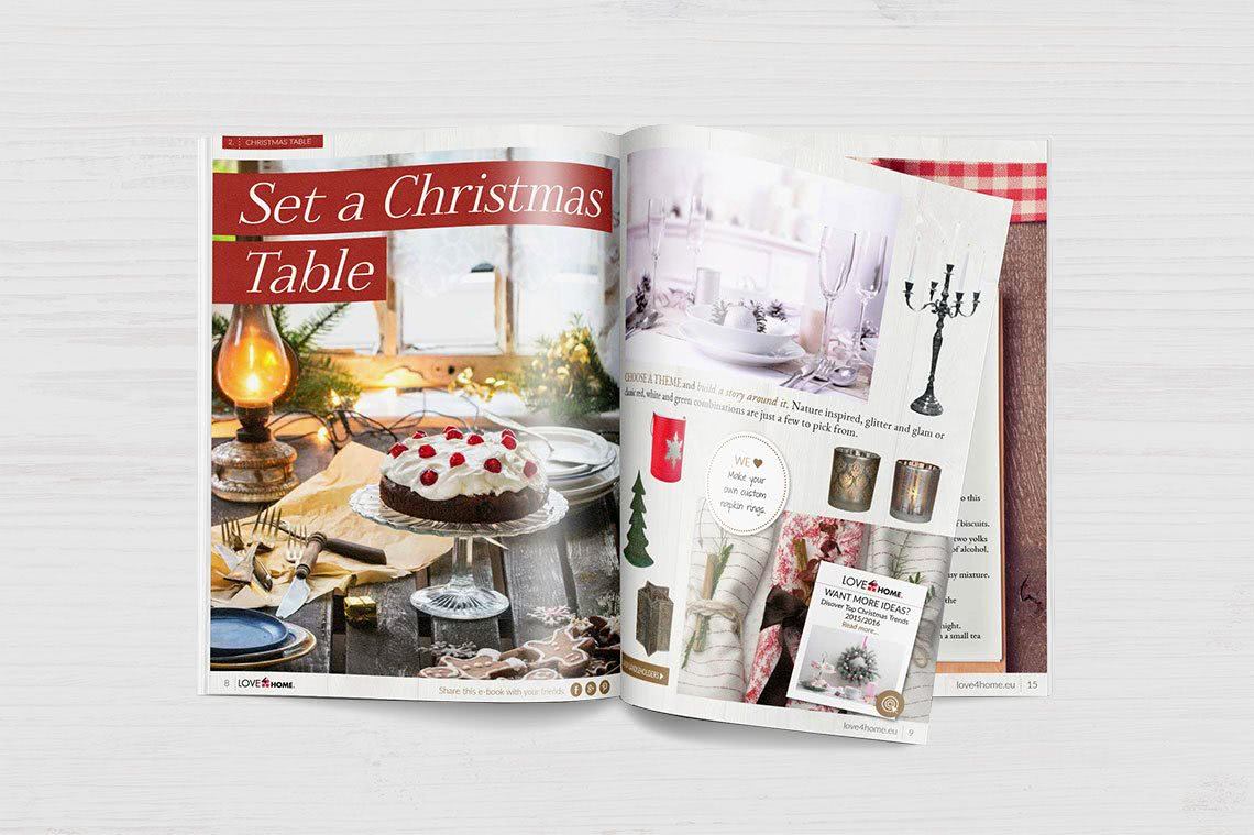 Three free eBooks have been issued: The Interior Trends Summer 2015, The Interior Trends Autumn/Winter 2015/2016, and The Big Christmas Decorating Guide, all 30 to 45 pages long. Each one introduced 4 – 5 different styling trends with additional ideas and home design tips. They contained product guides and explained colour palettes. All editions were web interactive – all products, tips, and article summaries had an individual hyperlink. Each of the presented styling trends had a special landing page with related products and suggested styling combinations.